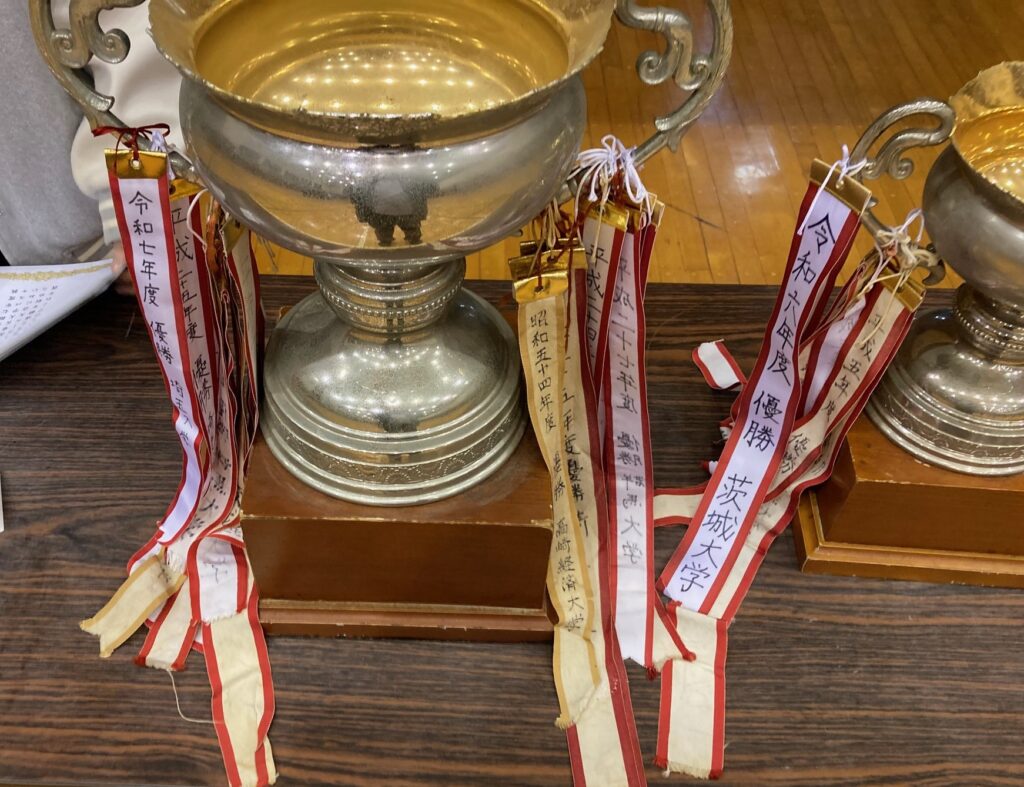 トピックとしては川崎会長が閉会式表彰で大会会長として優勝杯授与の任を担いました。秋季大会の賜杯に付けられたリボンに「昭和54(1979)年度優勝 高崎経済大学」が見えたのが感慨深かったです。
