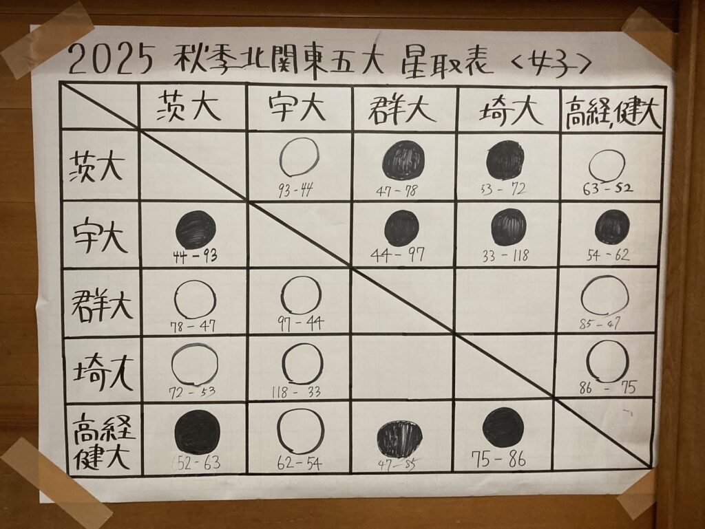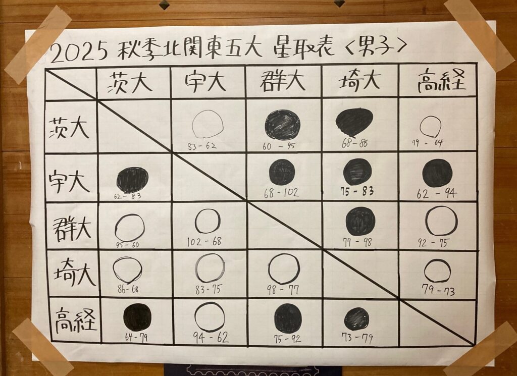 11月15・16日母校高経大主管にて開催されました秋季北関東五大学大会の結果は次の通りです。