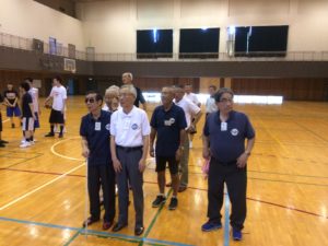 前半は紅白戦で一汗流し、第16回フリースロー名人戦結果は加藤大夢名人(現役2年生)、村田乃ノ華名人見習い(現役3年生)でした。加藤名人には副賞として越谷アルファーズ のB1昇格記念ユニフォーム(S44 横山一男さん寄贈)が授与されました。
