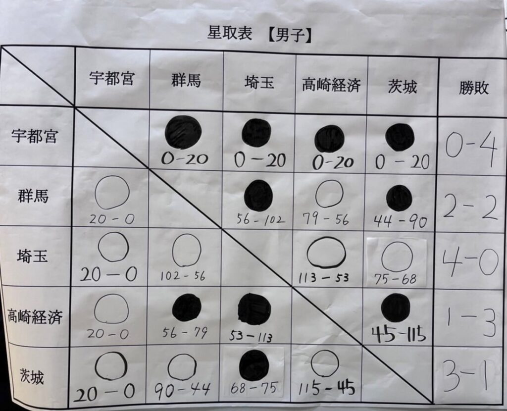 3月27・28日開催の春季北関東五大学大会(於:ブレックスアリーナ宇都宮)2日目の試合結果は次の通りです。